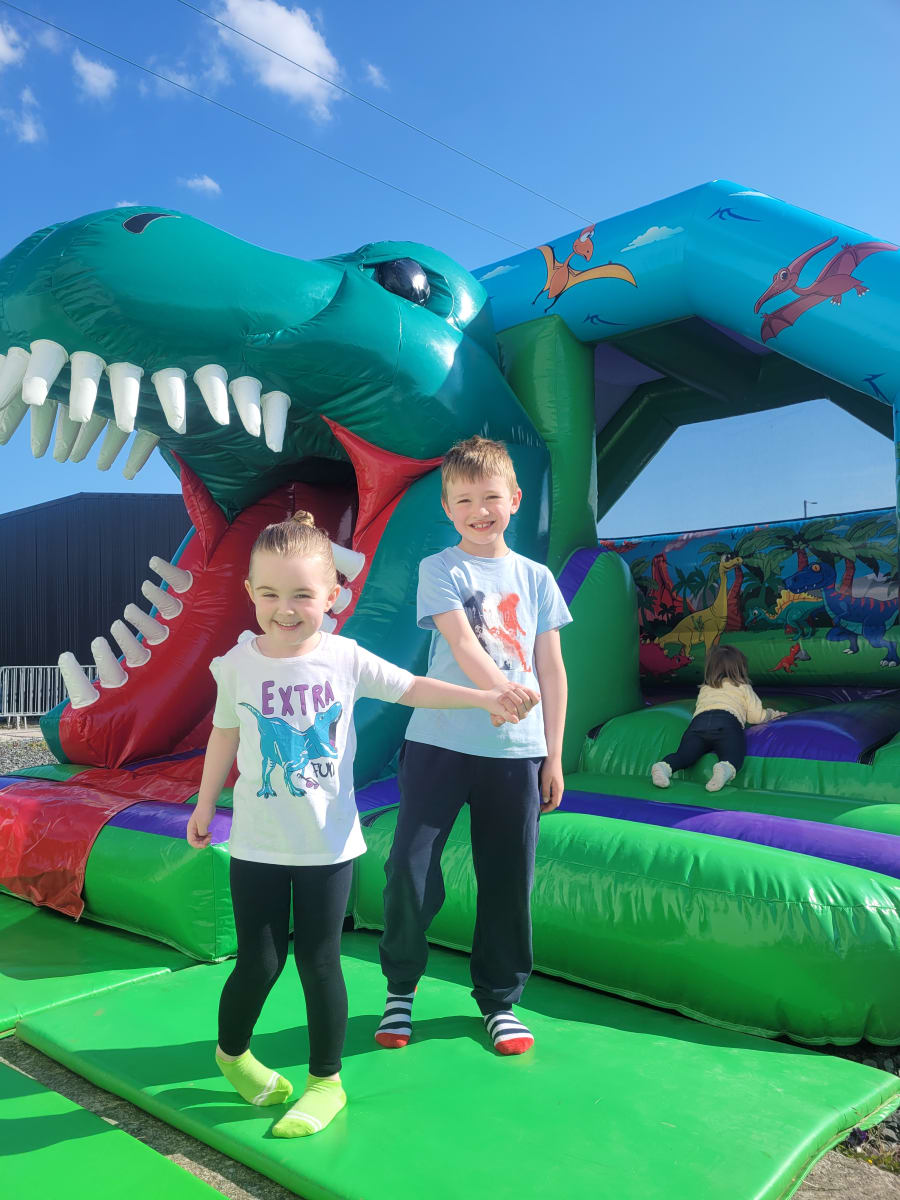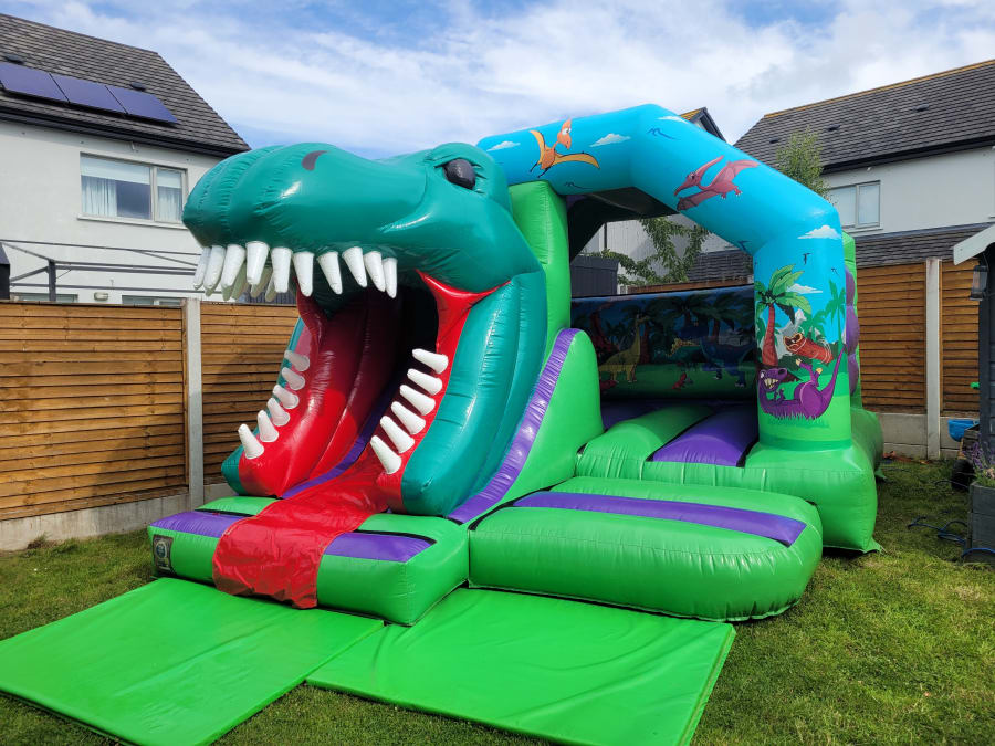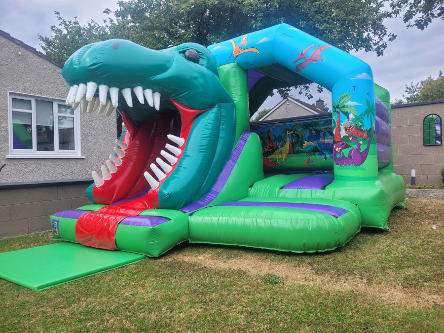This is our 15ft x 12ft 3D Dinosaur Combi Bounce & Slide Castle. This bouncy castle is perfect for small children and fits into most gardens. The Dino artwork on this Castle is beautiful and the 3D Dinosaurs head really gives this unit the WOW factor. Not only this does this bouncy castle look great but it's very safe for the kids also. It passes the EN 14.960:2014 which is the European Design safety standard for bouncy castles. "So Fresh Entertainment - We Bring The Party".